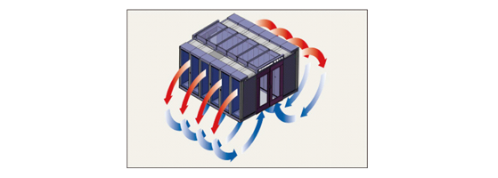 根据机房现场情况及机架功率采用冷通道半封闭或全封闭状态。。将空调冷量精确送到机柜内。。基于冷热空气分离有序流动的原理,,,冷空气由高架地板下吹出,,,,进入密闭的冷池通道,,,,机柜前端的设备吸入冷气,,,,通过给设备降温后,,,,形成热空气由机柜后端排出至热通道。。。热通道的气体迅速返回到空调回风口。。机柜密闭式涡轮后门,,把热气汇集,,,通过垂直风管与天花板无缝联接。。热回风与冷量完全隔离。。。。从而提高内部的冷气利用率,,,,带走更多设备产生热量,,,,降低设备温度。。。。