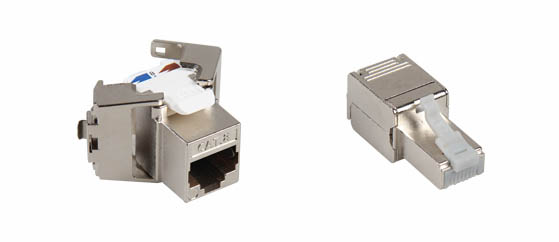 八类屏蔽型连接器,,,向下兼容RJ45端口,,采用高耐冲击力的PC工程塑料,,,,360度全方位的锌合金屏蔽外壳设计,,,,有效防止EMC电磁干扰,,,,具有更好的产品性能,,保证高数据流量、、、扩展性能好,,可以快速配置,,,,便于后期维护,,,适用于22-26AWG单股及多股线缆,,,,支持T568A和T568B两种打线方式。。